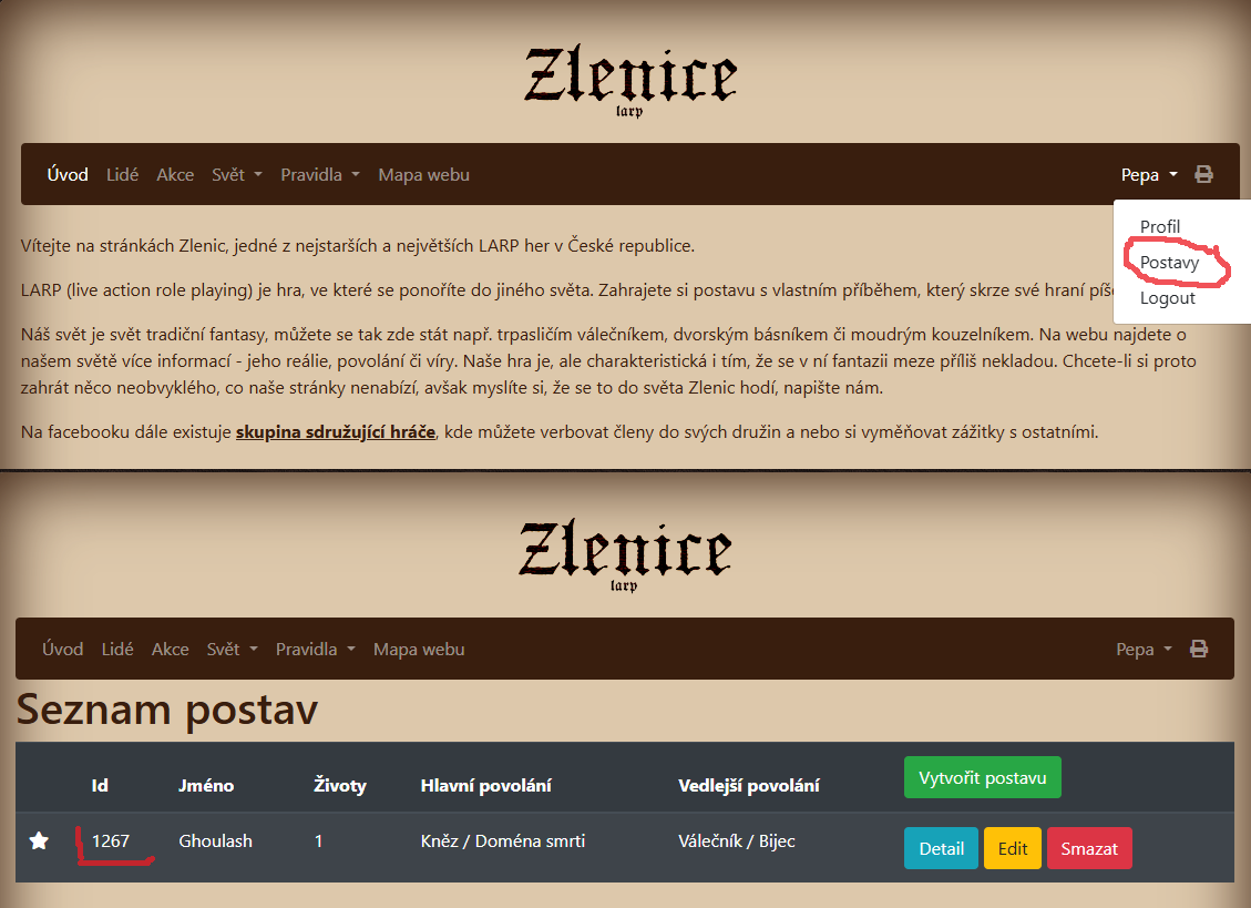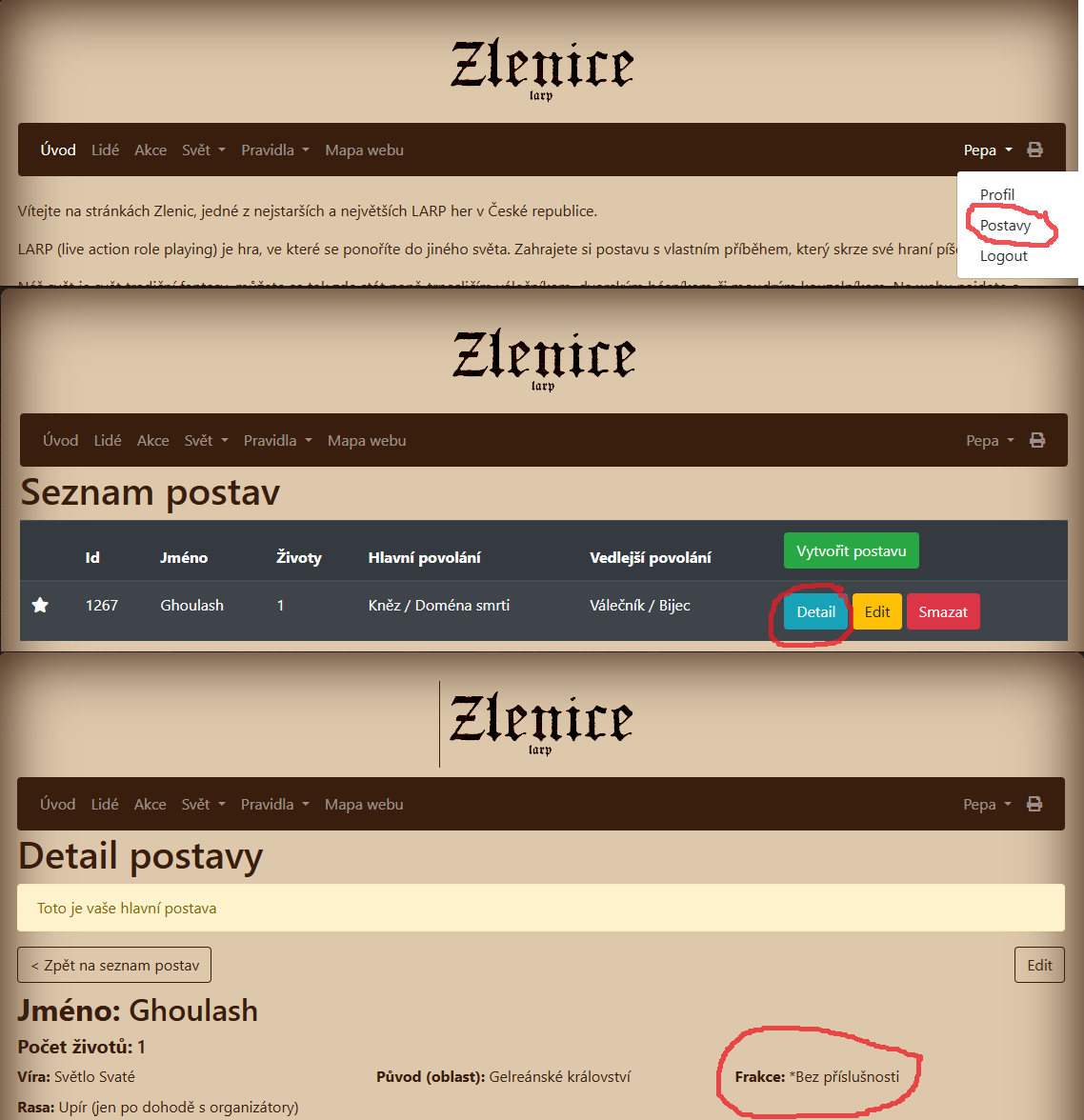 - Nic se neděje. Pokud jste si v Seznamu postav vybrali jinou postavu, než jste chtěli, napište nám na organizace@zlenicelarp.cz a postavu vám co nejdříve změníme.